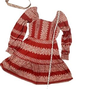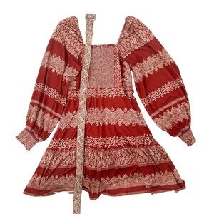 NEW Hale Bob Women's Grazia Jersey Mini Dress Red Print Belted Balloon Sleeve M