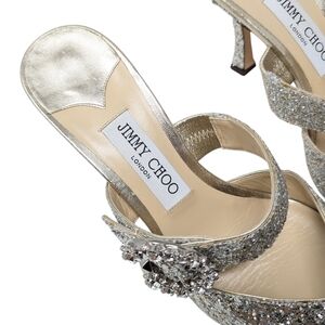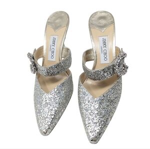 NEW Jimmy Choo Marta 100 Silver Crystal Coarse Glitter Mule Heel Size EU 40