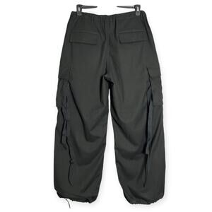 Brand new with tags. These wide leg baggy military cargo trousers are crafted from soft premium drapey flannel with a relaxed fit perfect for elevated streetwear or casual styling. Features include large utility pockets, drawstring on hem, elastic waist, zipper fly and a modern silhouette that blends traditional Japanese craftsmanship with contemporary design.