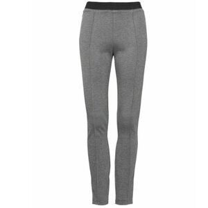 Features: A classic, pull-on legging in a soft, knit fabric that's ready for layering. Gray stretch fabric. Center Seam crease down the front. Pin tuck details mirror traditional trouser creases. Rear darts. A classic pull on design in soft knit material that's ready for layering.