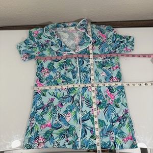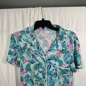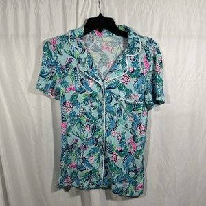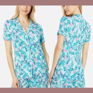 Add a fun style to your bedtime comfort with the Lilly Pulitzer® PJ Knit Short Sleeve Button-Up Top, featuring bright and eye-popping patterns.