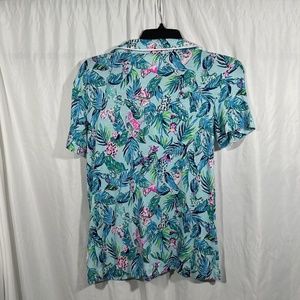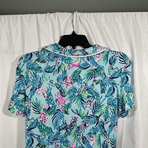 NEW Lilly Pulitzer [ XXS ] PJ Knit Button-Up Top Blue Barking Up Palm Tree