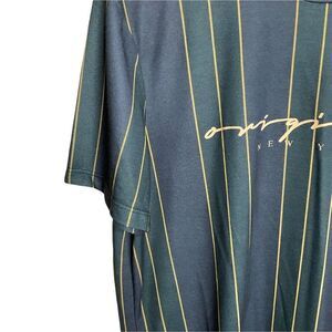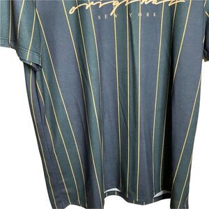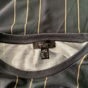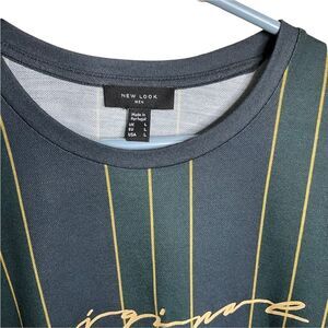 A very nice New Look men's short sleeve tee-shirt.  Crew Neck,  Dark green with think gold stripes and words "Original New York" on the front.  Very good like new condition.