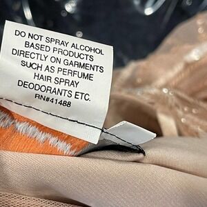NEW MAC DUGGAL EMBELLISHED BLUSH CAP SLEEVE FAUX WRAP TRUMPET GOWN SIZE 16. Elegant V-neck surplice evening gown adorned with sequin-and-bead floral accents throughout the mesh overlay. The sheer flutter sleeves and cape-style back feature rows of sequined embellishment. Mac Duggal. 100% Polyester. Fully Lined (with exception of sleeves). Back Zipper. Short Sleeve. Full Length. V-Neckline. Style #9064.