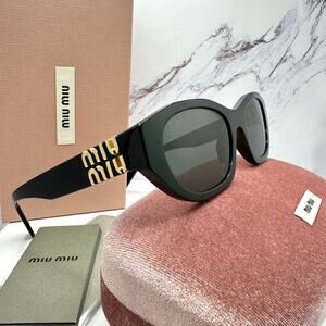 MIU MIU Sunglasses NEW - 100% Authentic! Sale Includes: MIU MIU Box, Miu Miu Case, Miu Miu Care Material & Polish Cloth 1,500 + Satisfied Customers with Positive Selling Reviews AUTHENTICITY GUARANTEED 100% ORIGINAL and BRAND NEW Item Details: * Brand: MIU MIU * Condition: Brand New MIU MIU Sunglasses - 100% Authentic * Black Solid Acetate Front Frame * Contrasting MIU MIU Gold Metal Letter Logo * Cat Eye, Geometric Full Rim Silhouette Shape * Gray Lens * Unisex Eyewear * Unique Serial Number etched to confirm authenticity * Made In Italy * 100% UVA/UVB Protection * Frames May Be Used As Eyeglasses * Measurements: Lens/Bridge/ Temple 53-19-140 mm 100% Authentic - 100% Positive Feedback - Trusted Seller! Designer Eyewear Sale - Great Gift! 814 MIU MIU Sunglasses Sale