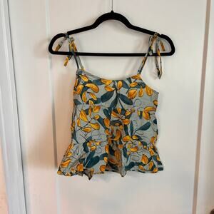 Mine Green Floral Tiered Peplum Style Tank Top Size Large