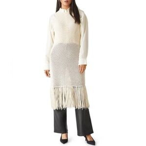 NEW & OTHER STORIES Crochet Fringe Wool & Cotton Midi Dress In Offwhite XS