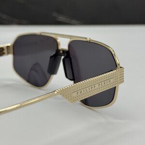 NEW PHILIPP PLEIN SPP106M 302 GOLD/GRAY MEN SUNGLASSES