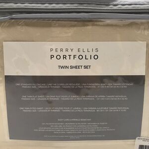 NEW Perry Ellis Portfolio Twin Sheet Set. Tan, Poly Microfiber, Wrinkle Resistant, 3 piece Bedding, Pillowcase, Flat and Fitted Sheets.