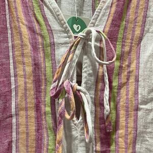 NEW Rails Brielle Stripe Tie Front Linen Blend Blouse Size Medium