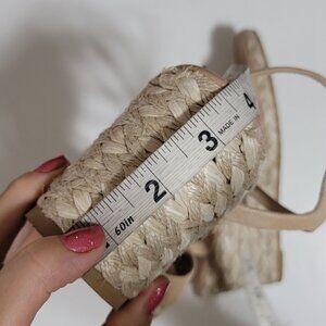 Elevate your summer wardrobe with these chic espadrille wedge sandals. Featuring a comfortable fit and a neutral beige tone, they effortlessly complement any outfit.