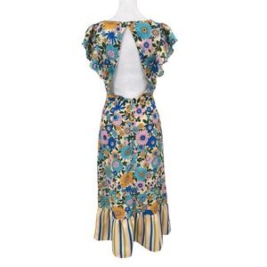 NEW - TOPSHOP Mix and Match Stripe and Floral Retro Midi Dress in Multi - Size 2