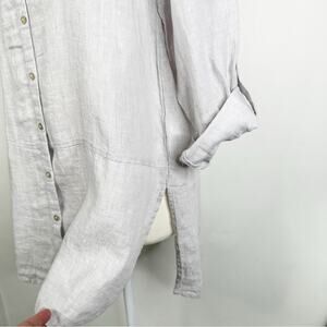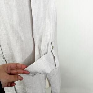 NEW Tahari Light Gray 100% Linen Button Down Tunic Top Women's Size Large