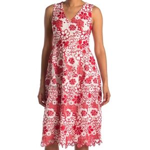 TAYLOR. Midi Sleeveless Scalloped Floral Dress In Ivory Infrared