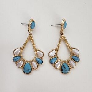 NEW Teardrop t Turquoise Stone Pearl Embellished Dangle Earrings