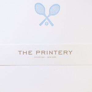 o Design: Engraved Ness Blue Tennis Racquets on Horizontal Bone White Card with Cream Border and French Vanilla Tissue Lined Envelope.