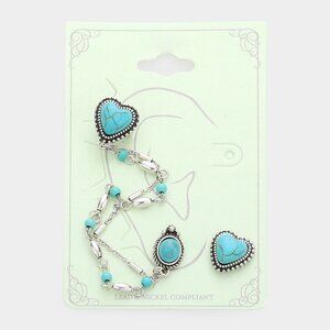 NEW Turquoise Stone Heart Ear Cuff Earrings Boho Western