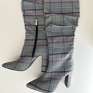 NEW JAGGER Houndstooth Check Knee High Boots in Multi!
