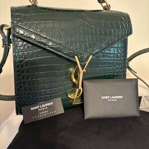 NEW YSL Calfskin Crocodile Embossed Mini Cassandra Gold Hardware with Dust Bag