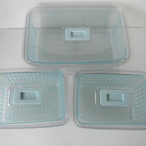 NEW c e ll a 3-Piece Vented Refrigerator Fresh Produce Keepers CONTAINERS BLUE