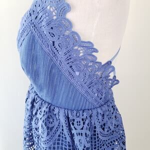 NEW self-portrait Lace Peplum Dress Blue Plunging Neck Revolve Women 2