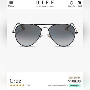 NIB Diff Cruz Black Grey Gradient Sunglasses FK-BKGG-6