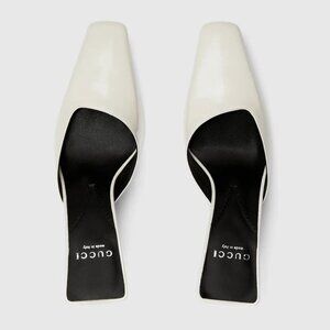NIB Gucci interlocking G plaque white leather mules IT 38.5 US 8.5