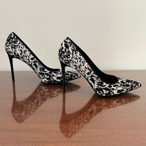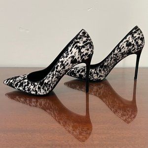 NIB! Never even been opened until these photos were taken! Gorgeous speckled pony print calf hair adds an exotic touch to these Gretel pumps. Set on a stiletto heel, they're perfect for pairing with everything from jeans to trousers to dresses. 100% calf hair, lining and sole are both leather, slip on and a pointed toe. Includes box, booklet, and dust bags. Made in Italy.