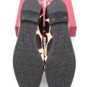 NIB Salvatore Ferragamo Trifoglio Gancini Bit Leopard Print Loafers Flats