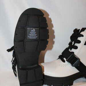 NIB UGG WOMEN'S ASHTON LEATHER MOTO BOOTS BLACK WHITE SZ 7