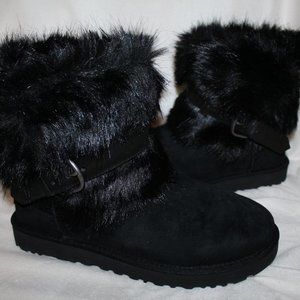 NIB UGG WOMEN'S CLASSIC FLUFF BUCKLE SHAGGY SUEDE SHEARLING BOOTS BLACK