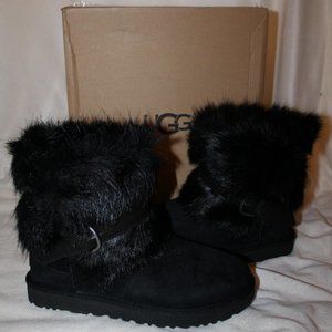 UGG Australia "CLASSIC BUCKLE MINI" Shaggy Suede Boots.
