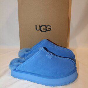 NIB UGG WOMEN'S DISCOQUETTE SUEDE SHEARLING LINED SLIPPERS BLUE
