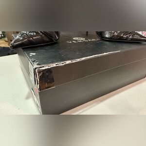 Comes with dust bag, cards, and extra heel taps. Box has damage (see photo)