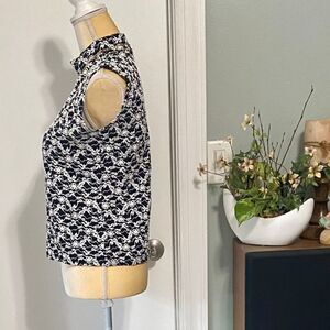 NICOLA Black White M/L Sleeveless Embroidered Look Mock Neck Top Y2K