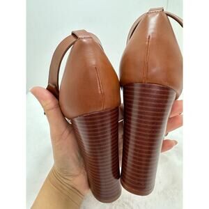 NINE WEST - FREYA, Dark natural GENUINE leather 4.75" platform sandals, SZ 10M