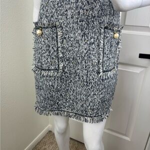 Stylish tweed sleeveless dress featuring elegant pearl accents. Perfect for a sophisticated look in good condition.