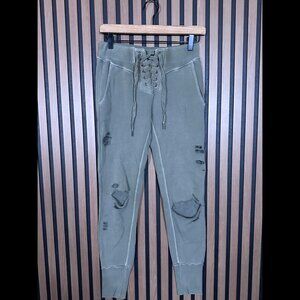 NSF x Soul Cycle Joggers Small Womens Sage Green Lace Up Mid Rise Distressed