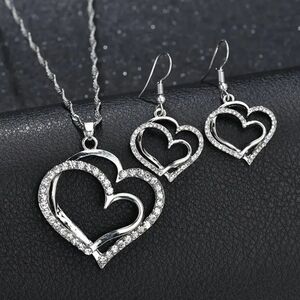 NWOT 1 Pair Of Earrings + 1 Necklace French Romantic Style Jewelry Set Sparkling Heart Design Silvery Or Golden Make Your Call Gift For Her