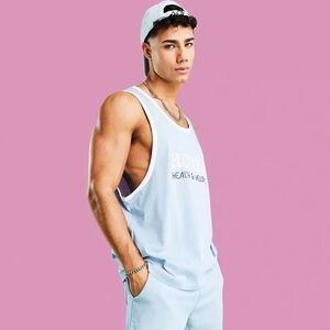 NWOT ASOS Men’s Actual health and wellbeing tank top graphic print light blue