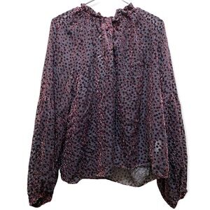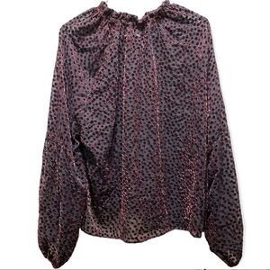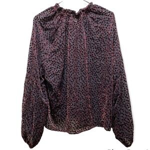 NWOT Addition Elle Balloon-Sleeve Burnout Velvet Blouse color Winetasting size X