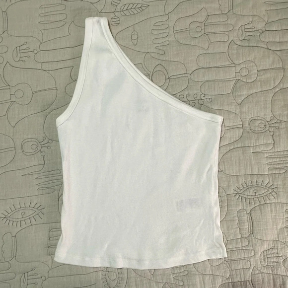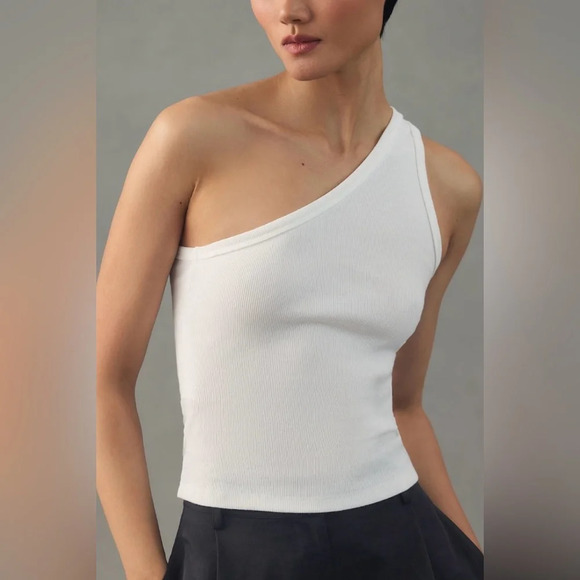 NWOT Anthropologie Pilcro Zeda Ribbed One Shoulder Top M White Staple Piece
