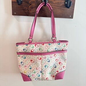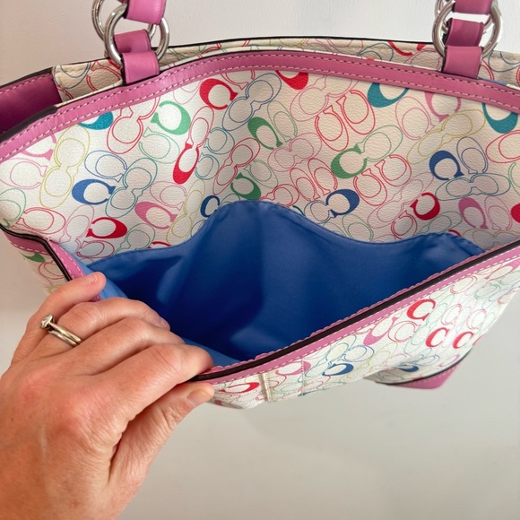 NWOT Coach Heritage Chelsea Multicolor Signature C Tote Bag Pink Trimmed
