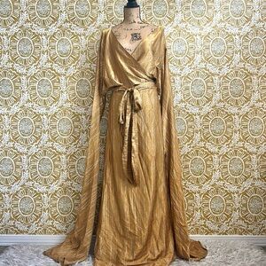 DIARRABLU Maya Exaggerated Long Sleeve Textured Wrap Dress in Gold. Size 3XL, new with only Nordstrom tag attached. Retail $275, sold out style.