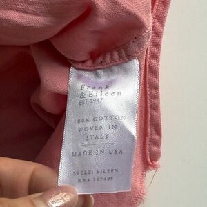 Tags frank and eileen eileen shirt relaxed fit button up sunset color size xs women coastal style casual top long sleeve soft cotton distressed hem california vibe beachy look lightweight layering piece timeless classic premium brand small batch garment dyed chest pocket flattering fit effortless style everyday wear made in usa