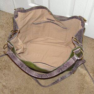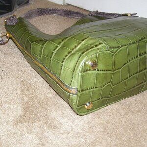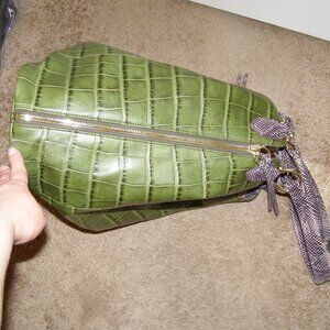 💚🐊 NWOT G.I.L.I. GREEN Croco Embossed Italian Leather Slouchy Wing Hobo