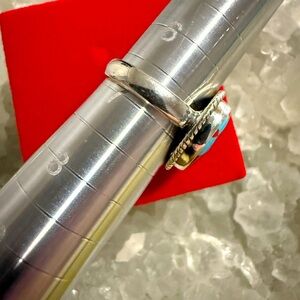 NWOT Handmade Sterling Silver Turquoise & Red Checkered Ring