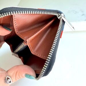 Stylish Jack Spade wallet with red, cream, and blue colors. Compact and chic design.