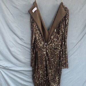 NWOT Mac Duggal LONG SLEEVE SEQUINED MINI DRESS Olive Green Bling Glam Gold