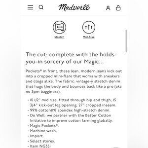 NWOT Madewell Cali Demi-Boot Jeans in Glenside Wash Blue 27